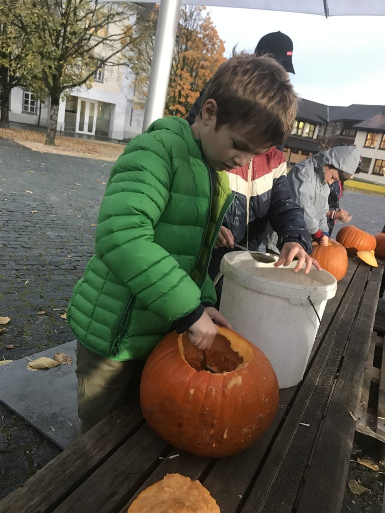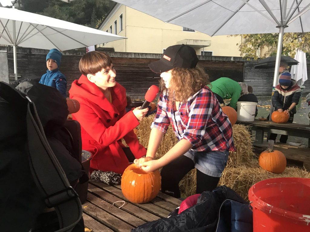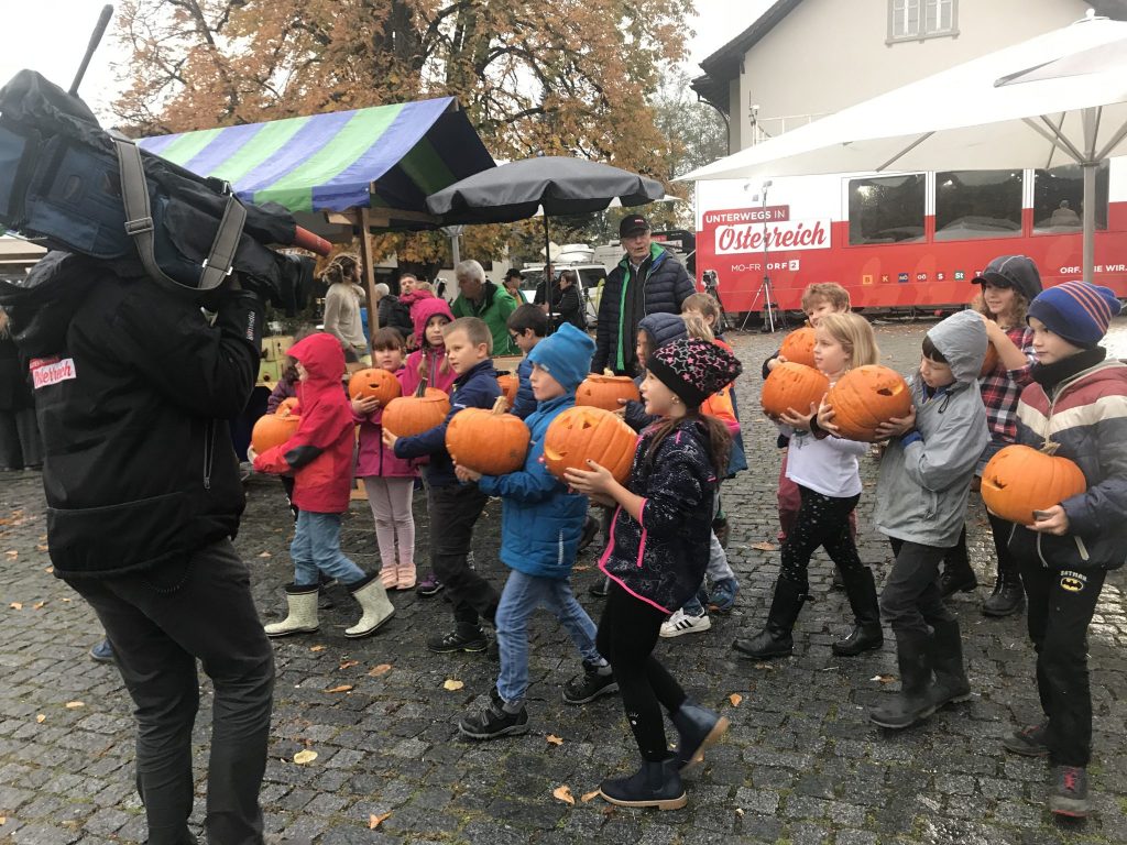 “Guten Morgen Österreich” war der Anlass für die Kinder der 3.Klassen, Kürbisse auf dem Marktplatz zu schnitzen.