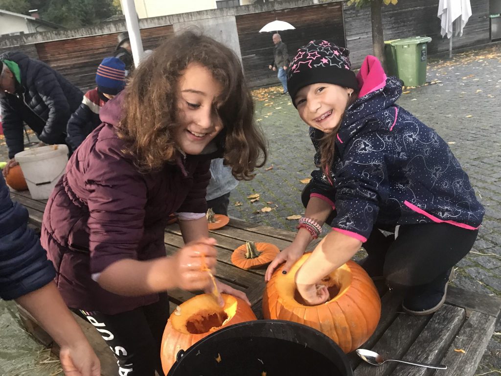 Mit tatkräftiger Unterstützung des Obst- und Gartenbauvereins entstanden tolle Kürbisgesichter.