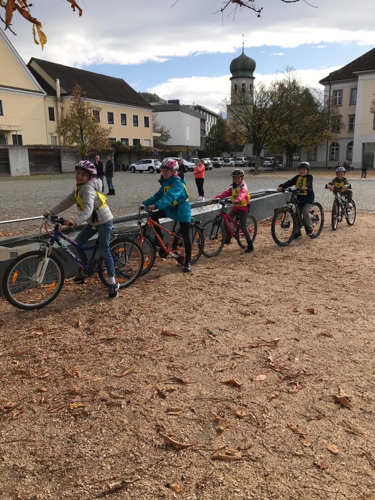 Seit Schulanfang übten wir, die 4a und die 4b, fleißig für theoretische Radfahrprüfung. Vorrangregeln, Verkehrszeichen und vieles mehr wurden gelernt. Somit haben wir alle die Prüfung geschafft und durften zur praktischen Prüfung antreten.