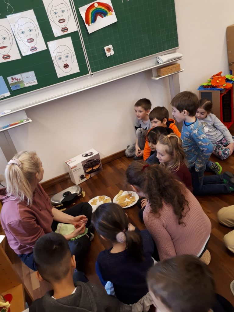 Aus frischen Eiern von glücklichen Hühnern zauberten heute die Vorschulkinder leckere Waffeln.
