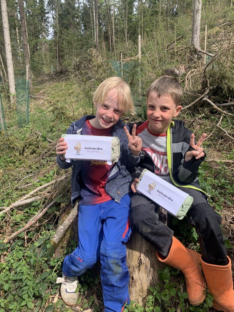 Wir waren heute mit unserer Entdecker-Box im Wald unterwegs und haben viele tolle Sachen gefunden. Niclas und Jonas waren ganz eifrig am suchen und hatten viel Spaß.