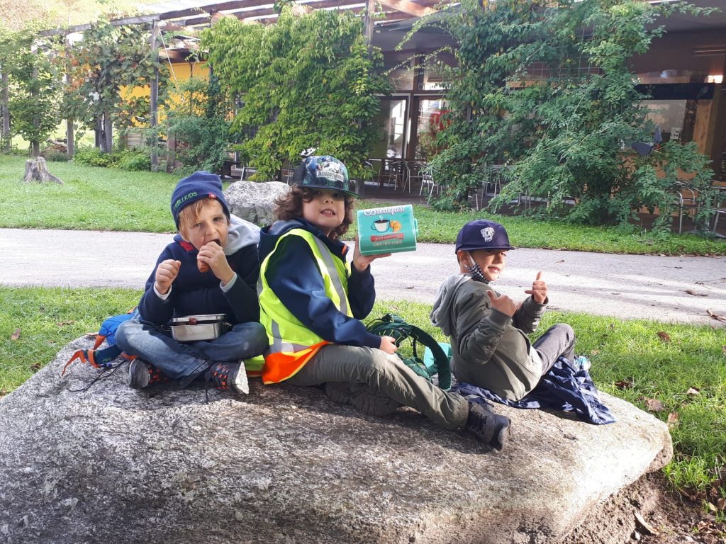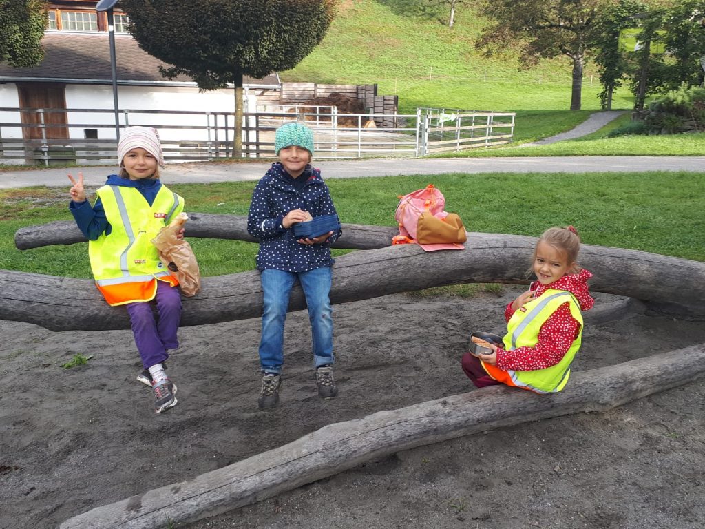 Fröhlich wanderten wir, die Kinder der 1b-Klasse, am Donnerstag mit dem Ziel “Sunnahof” los. Von der morgendlichen Kälte nicht abgeschreckt, führte uns der Weg durch den Wald bis nach Tufers. Der Spielplatz wurde eifrig ausprobiert. Großen Spaß boten eine selbst erfundene Rutsche, ein verwachsenes Versteck, einen tollen Kletterbaum und natürlich auch das Spielhäuschen.