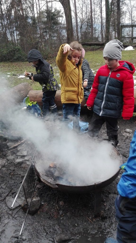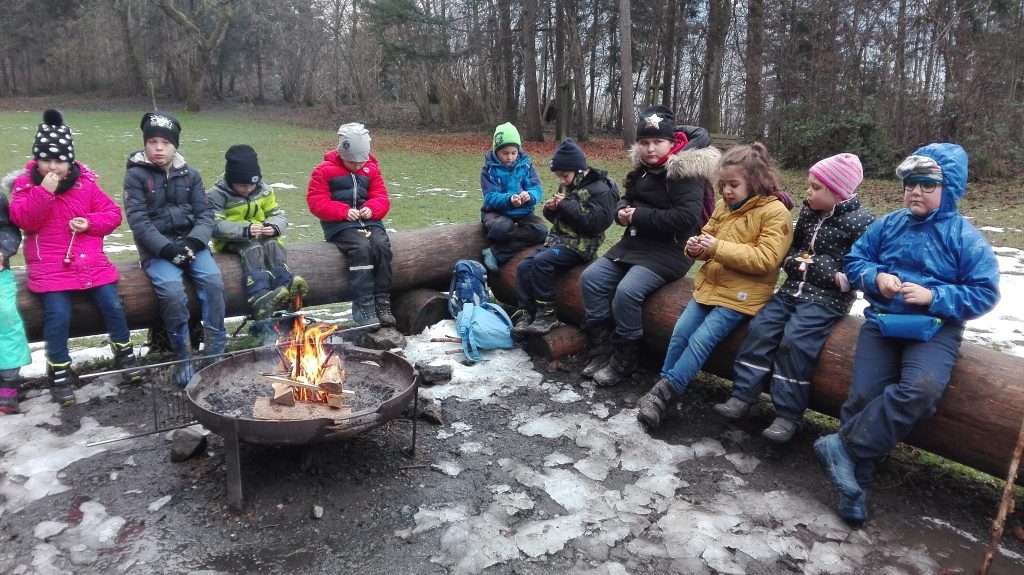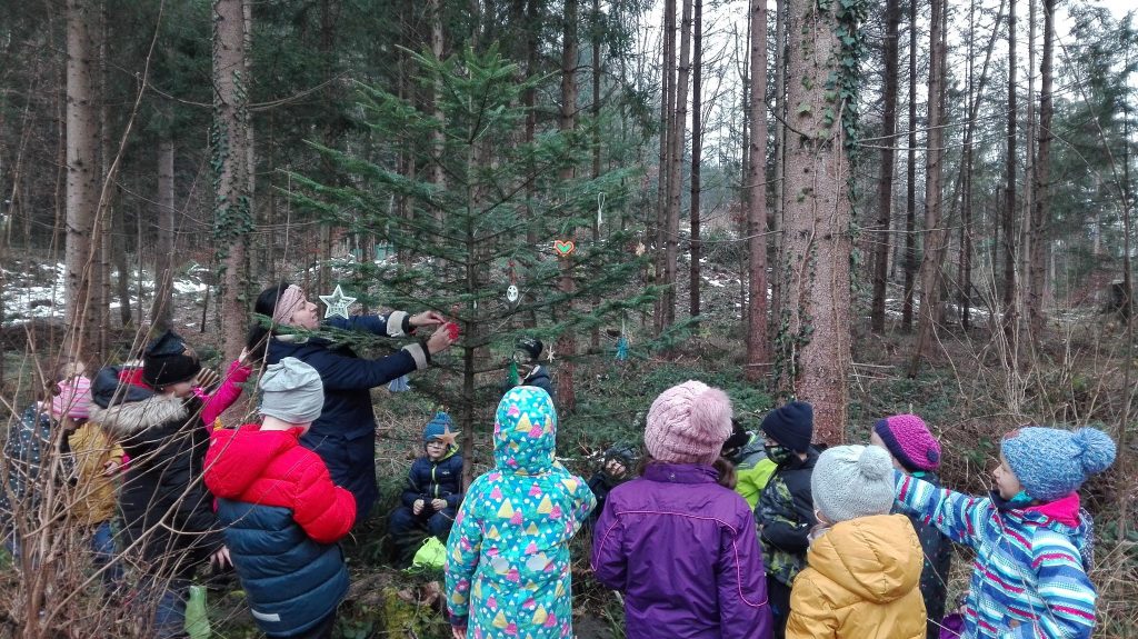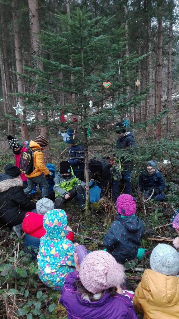 Am Montag verbrachte die 1b-Klasse einen besonderen Nachmittag im Wald. Gemeinsam wurde ein echter Christbaum geschmückt. Bunt und vielfältig wie die Kinder selbst, waren auch die Anhänger. Nach einer Geschichte über den Weihnachtswald sind wir bei Lagerfeuer, Mandarinen und Nüssen zusammen gesessen und haben die erholsame Ruhe im Wald genossen. Was gibt es schöneres?!