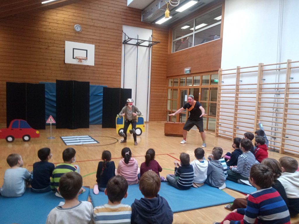 Clown Schlotterhose hat uns am Donnerstag, den 11.11. in der Schule besucht. Wir hatten großen Spaß, als er uns das sichere Verhalten auf dem Schulweg und mit den Rollschuhen gezeigt hat. Vielen Dank für diese tolle Stunde – wir haben herzhaft gelacht und wichtige Dinge gelernt!