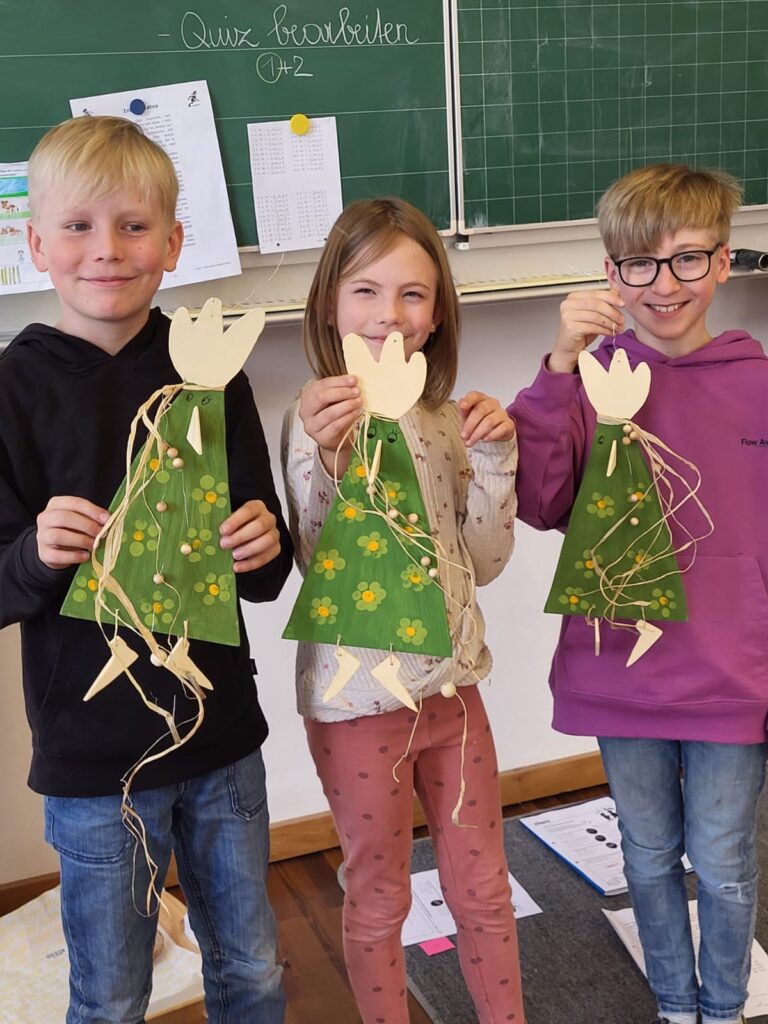 Rechtzeitig vor Ostern sind unsere Hennen aus Holz fertig geworden. Das Aussägen, Schleifen und Verzieren hat uns Spaß gemacht!