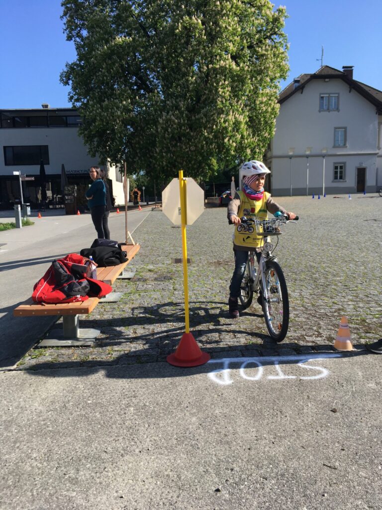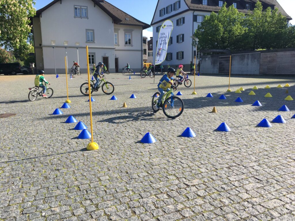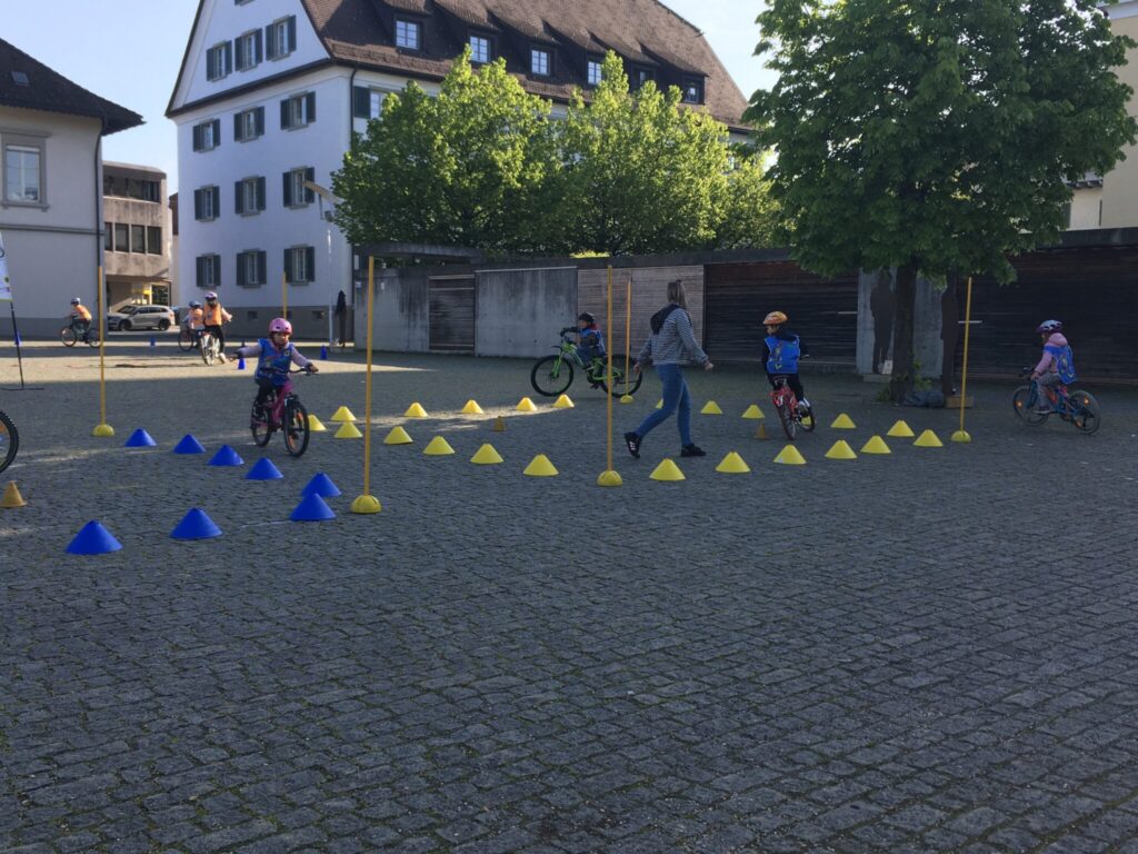 Auf dem Marktplatz wurde vom Ländle-Radritter-Team ein spannender Stationsbetrieb aufgebaut. Immer zwei Klassen zusammen durften in Kleingruppen Station für Station ausprobieren und ihr Geschick auf dem Drahtesel zeigen. Von zielgenauer Bremsung, über Fangen mit dem Rad, Geschicklichkeitsparcours hin zu kleinen Kurven fahren, war alles dabei. Sogar ein Rad-Check auf die Verkehrstüchtigkeit wurde durchgeführt.