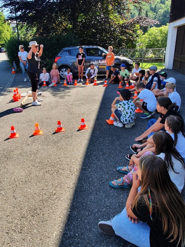 Bei der Aktion „Hallo Auto“ waren die 3-Klässler mit Begeisterung dabei. Sie lernten viel Neues darüber, welche Faktoren beim Anhalten eines Autos eine Rolle spielen und dass der Anhalteweg länger ist, als man glauben würde. Am Schluss durften alle Kinder – manche auch mit einer ordentlichen Portion Respekt – bei einem fahrenden Auto selbst eine Vollbremsung durchführen. Danke an Shanna vom ÖAMTC für ihren Einsatz und ihre Geduld!
