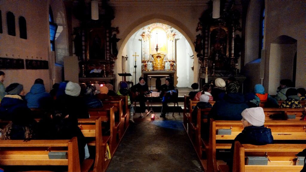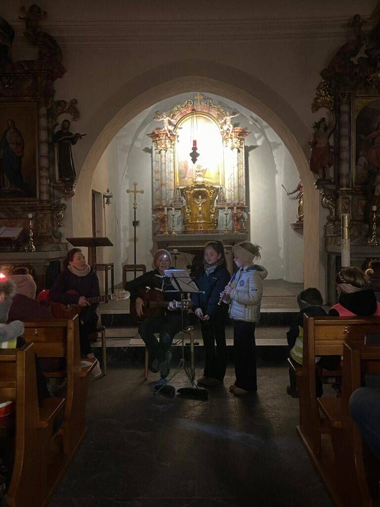 Jeweils Montag- und Freitagfrüh von 7.30 bis 7.45h treffen sich Kinder aus allen Klassen der Schule in der St. Peterkirche, um gemeinsam weihnachtliche Lieder zu singen.
