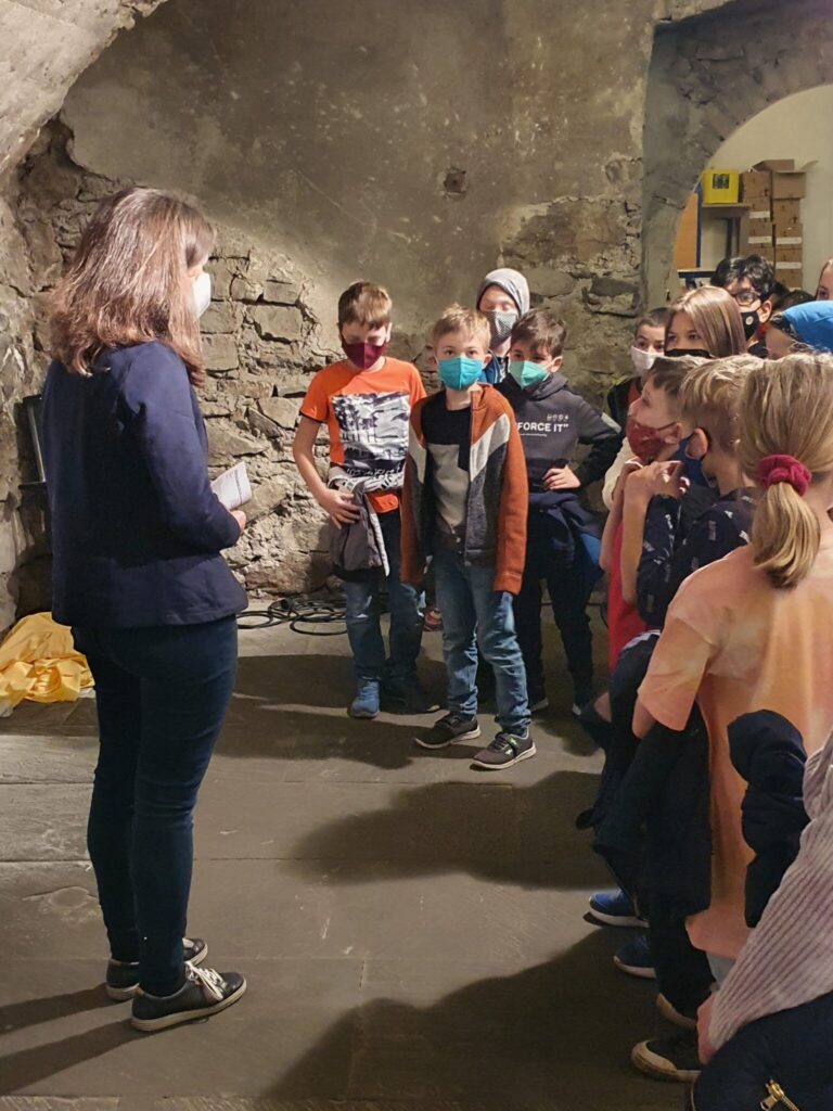 Zunächst erklärte Bianca Bitschnau uns kurz die Geschichte des Gebäudes. Dass es früher sogar ein Gasthaus und eine Polizeistation mit Arrestzelle war, fanden wir spannend. Dann zeigte sie uns bei einem Rundgang das Rathaus vom Keller bis zum Dach.