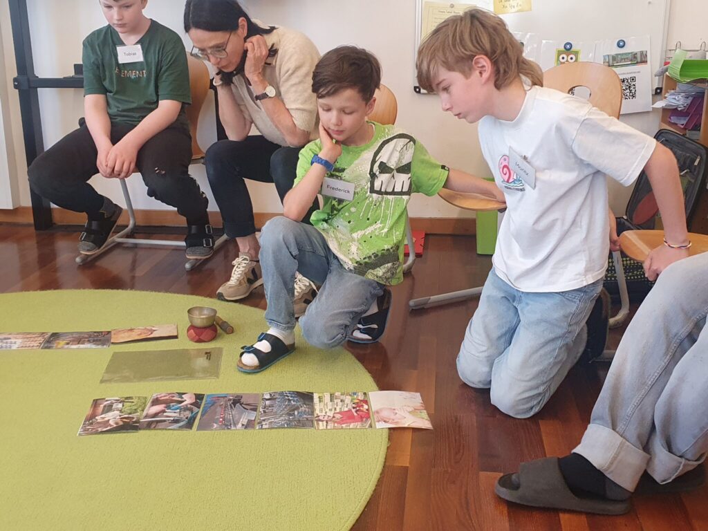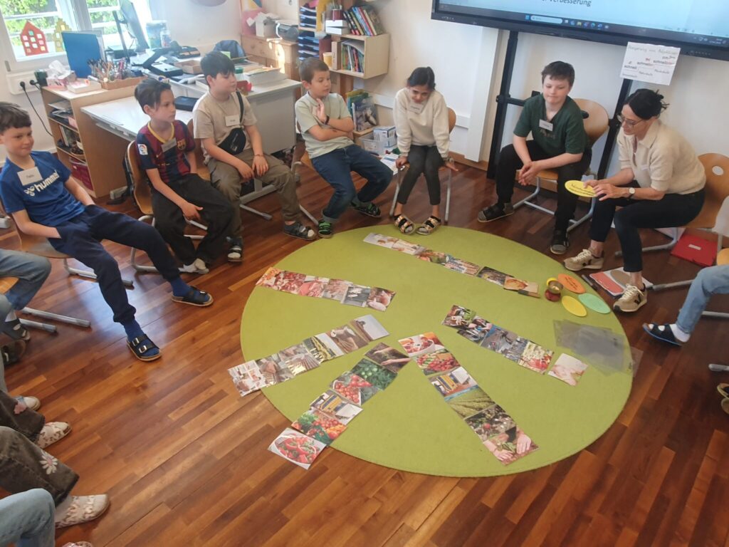 Die dritten Klassen arbeiteten beim Workshop „Das ess ich noch“ mit Silvia zum Thema Nachhaltigkeit beim Essen. Mit Bildkarten entdeckten die Kinder, wie viel Arbeit, Zeit und Energie gebraucht wird, bis Lebensmittel gekauft werden können. Gemeinsam überlegten sie, welche Lösungen es gibt, dass Essen nicht weggeworfen wird, und hatten dabei viele Ideen, z. B. Einkaufsliste schreiben, einfrieren, Rezepte für „Restle“ kochen… Das abschließenden Spiel „1,2 oder 3“ machte den Kindern viel Spaß. Danke an Silvia von der „young caritas“ für den gelungenen Workshop.